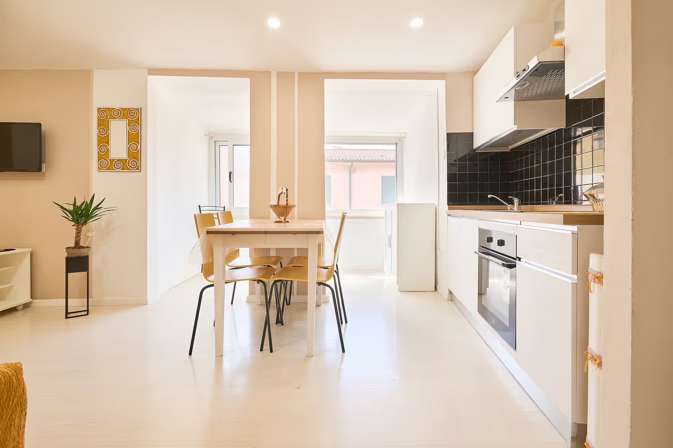 CasalSole is a newly renovated two-room apartment in the historic center of Piombino, boasting fine finishes and materials, where the use of neutral and at the same time warm and impactful colors are a clear reference to the brilliant Etruscan Coast where we hope you will be able to feel like at your home.